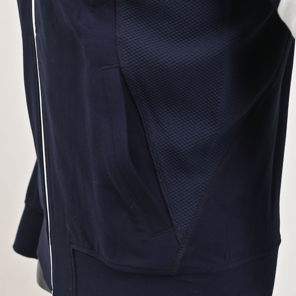 脇の切替えは、ストレッチ性のあるメッシュ素材を採用し、トレーニングでの汗や熱気をスムーズに排出して、