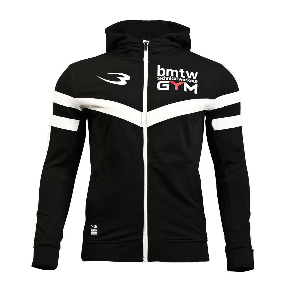 今シーズンのアイコンは、ズバリ「GYM」です。左胸にアイコニックとなる「bmtw technical workout」に「GYM」をプラスして、アクセントカラーを入れアップデートしました。背中の「bmtw technical workout」にもアクセントカラー。切替えラインは、前身頃・袖・フードに入れ、スタイリッシュなデザインに。アイコンの2本ラインは、両袖に入れ強調しました。