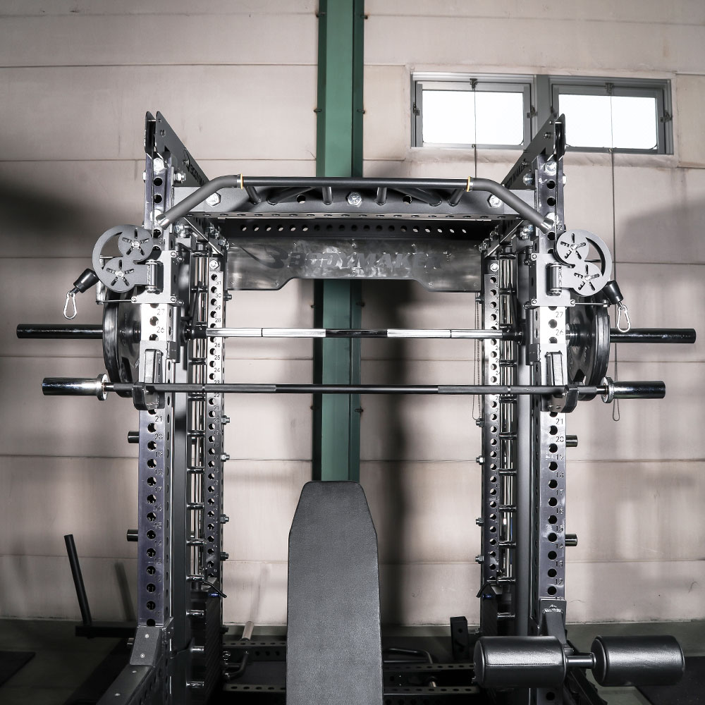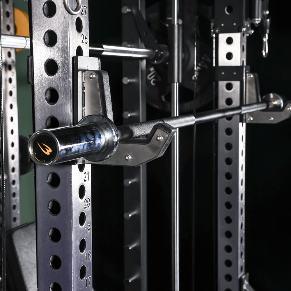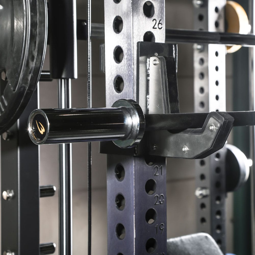 高重量向けシャフト「オリンピックシャフト」に対応。自分の目標に合わせて重量を調節していただけます。あらゆるトレーニング空間にマッチする黒一色の精悍なプレート&バーベルがハードなワークアウトを求めるトップビルダーやアスリートに理想的な重量設定を実現します。