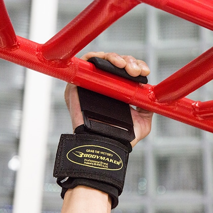 握力をサポートしてくれるアイテムです。握力に余裕があるということは、正しいフォームでターゲットの筋肉に効かせやすく、発達させやすいということです。トレーニングしたい部位に集中するための必需品♪ 持ちかたでプッシュとプルが使い分けられます。