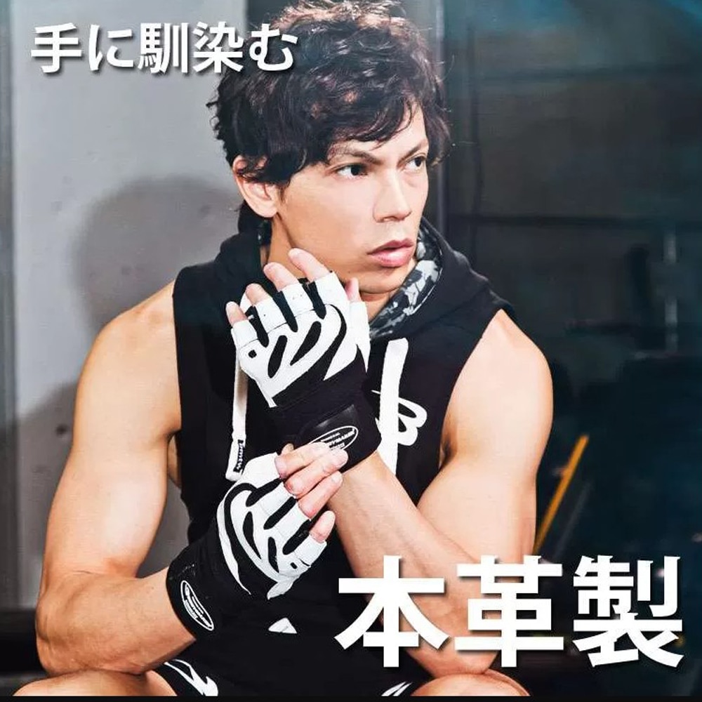トレーニング用、脱着しやすい本革ゴートスキン製グローブです。ウエイトトレーニングでの手のひらのケガやマメの防止に。