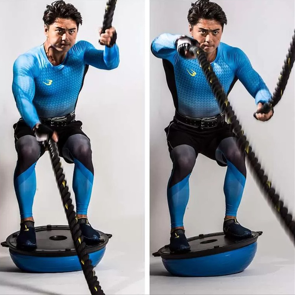 重さ7kg、長さ約9mのロープを全身の筋肉を使って動かす事で、体幹を強化し、上半身と下半身の連動を強くします。普段使わないような全身の筋肉もバランス良く鍛える事ができ、心肺機能も向上させます。