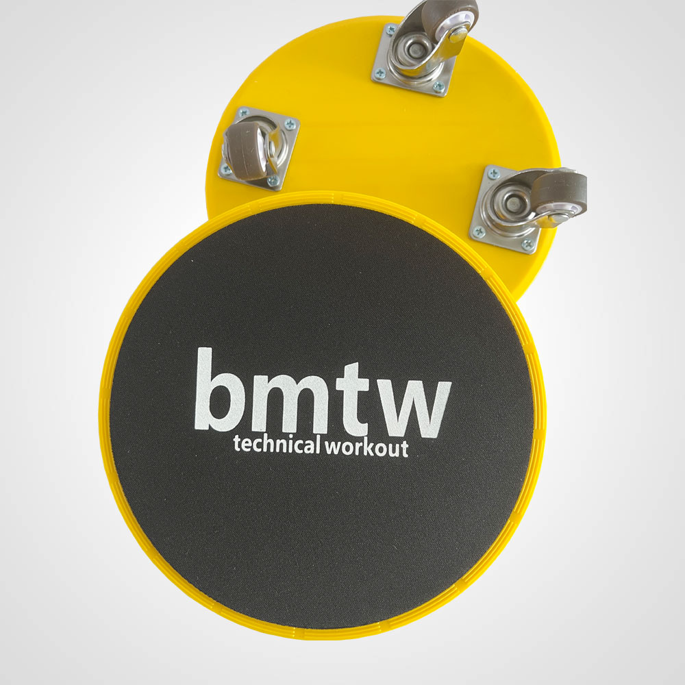 体幹トレーニングや下半身の強化におすすめのスライドボード。シューズの上からシューズカバーを履き、ボード上をスライドして横滑りしたり、スクワットやランジなどの運動を行うことで、下半身や全身のトレーニングが可能です。