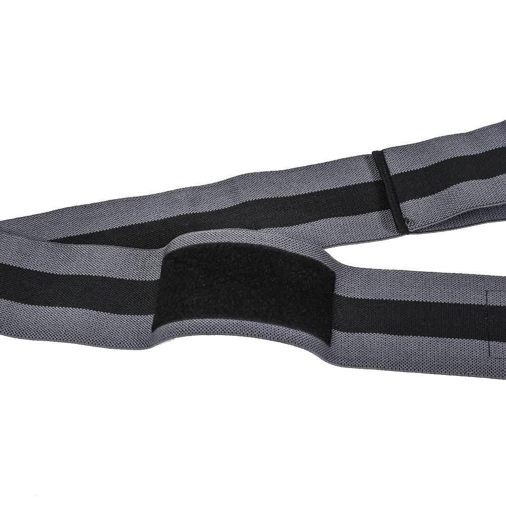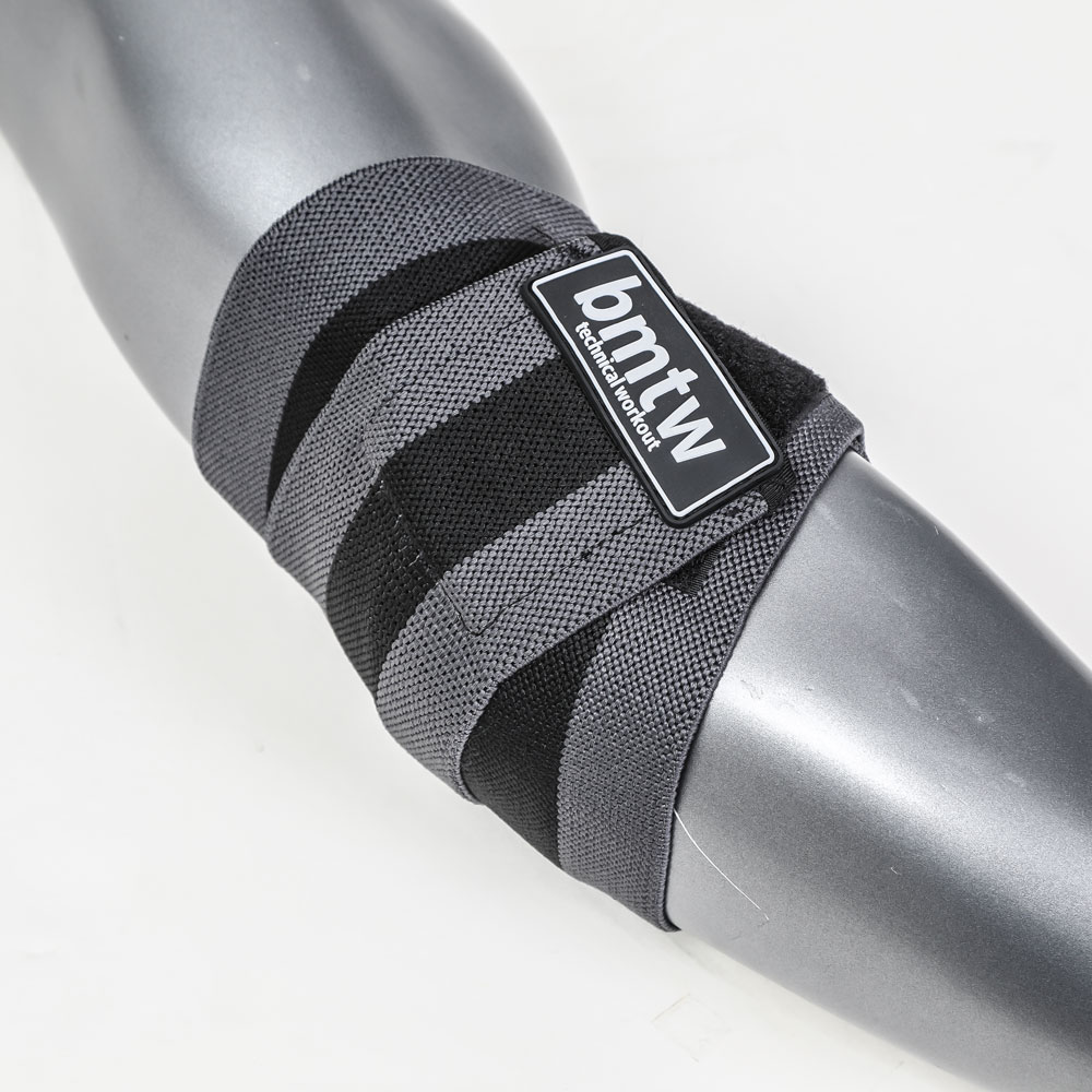 痛めがちな高重量を扱う際に巻いて使用するニーラップです。膝を固定することにより負担を軽減出来るので怪我防止に繋がります。また、膝を固定することでバランスを取ったりなど無駄な力をあまり使わなくなり力も発揮しやすくなります。お好みに合わせて自由に固定力や圧迫力が調整でき、運動中膝の安定感を強化します。伸縮性のあるテープや包帯の代わりとして効果を発揮します。