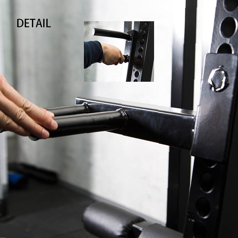 [1]練習者の身体を支えるシートパッドの角度は簡単な操作で調節可能。シートの角度はピンを操作するだけで、ワンタッチで調整できます。