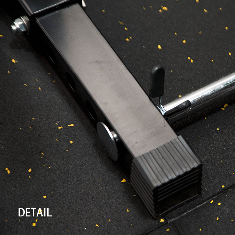 ゴムチップとゴムシートの2重構造となっております。硬質マットのため、傷つきにくく、トレーニングマシンの設置に最適です。
