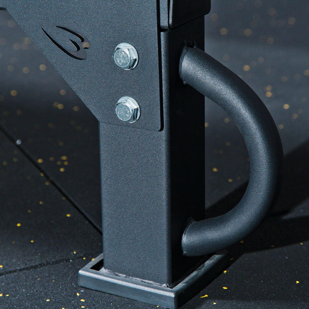 【!最強クラスの耐久性と頑丈さを持つハイレベルマシン『BRAWNYシリーズ』が登場!】『BRAWNY=屈強』の名を持つハイモデルアジャスタブルベンチ。フレームの厚み3mmは、ジムレベルの高耐久フレーム。適度な弾力と強力なシートパッドを装着し、肩甲骨の動きを妨げずフォームの最適化を促します。ベンチプレスで使いやすいワンサイド1本足構造。フットキャップには安定性の高いラバー素材を用いています。フレームにハンドルとタイヤを設置しており、女性の方でも簡単に移動させる事が可能です。フラットな状態の際、前後両シートの隙間が狭く違和感を軽減しています。立てての収納する事が可能です。ブランドのシンボルロゴはレーザー加工仕様によりプレート部に刻印しています。