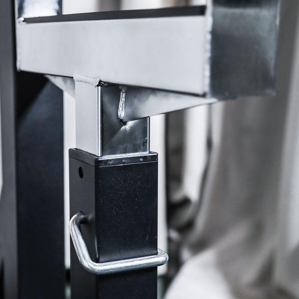 バーベルホルダー部には、ロックピン+高さ調整ピンのダブルロック機構を採用。揺れを抑え、トレーニング中の安定性を強化します。