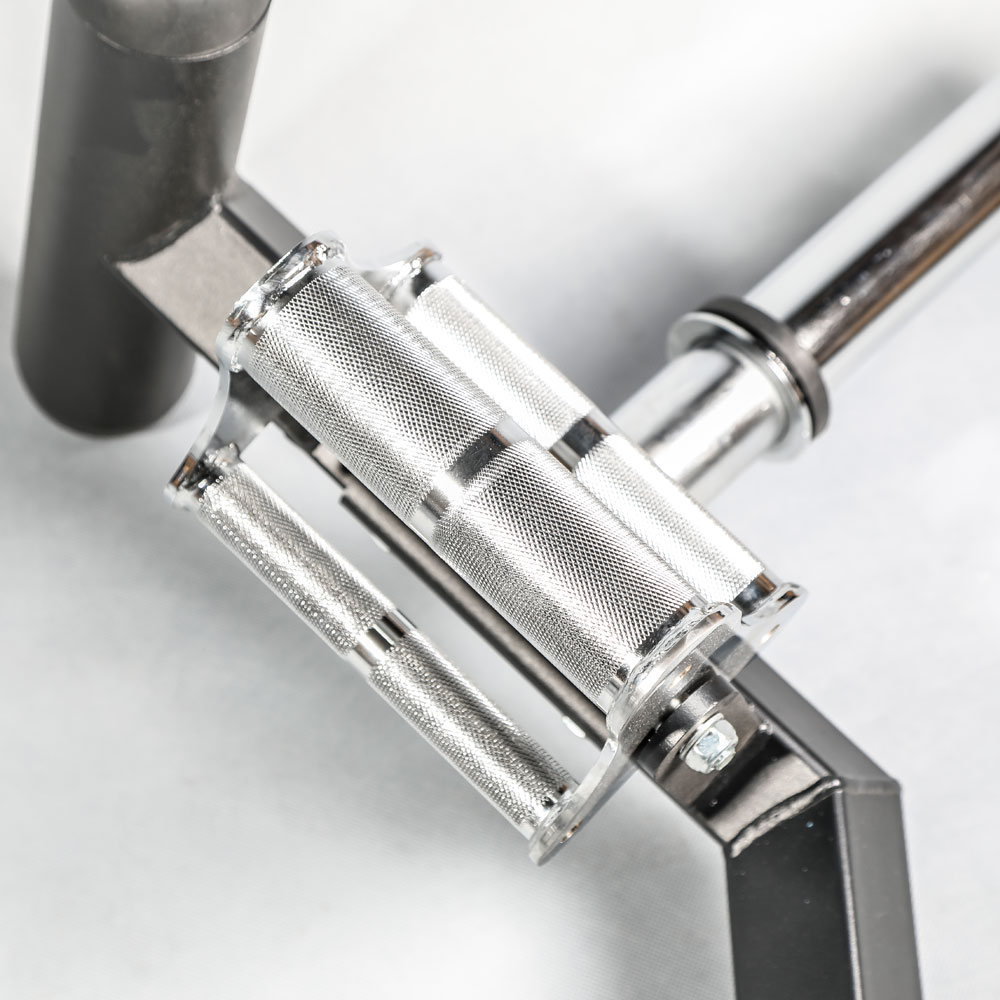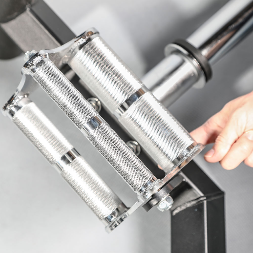 主にショルダーシュラッグに最適ですが、スクワットやカーフレイズなど多彩な種目にも対応。これ1本で全身トレーニングをサポートします。また、持ち手はマルチハンドル仕様で全方向に可動。体格や種目に合わせて自然なポジションで握ることができ、ストレスフリーなトレーニングを実現します。