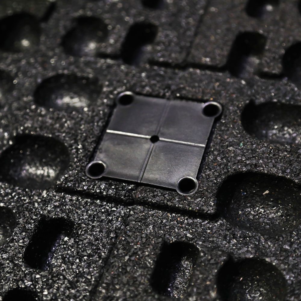 ウエイトリフティング等トレーニング時に、落下による衝撃や音の吸収を目的とした床面に敷くマットです。グリップ力と耐久性の高いラバー素材を使用、マットの底面に独特な空洞デザインを配置し、衝撃と音の吸収がより効果的になります。