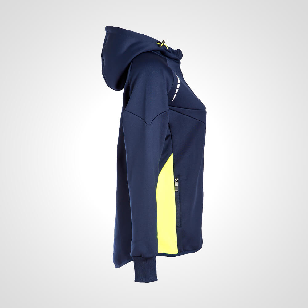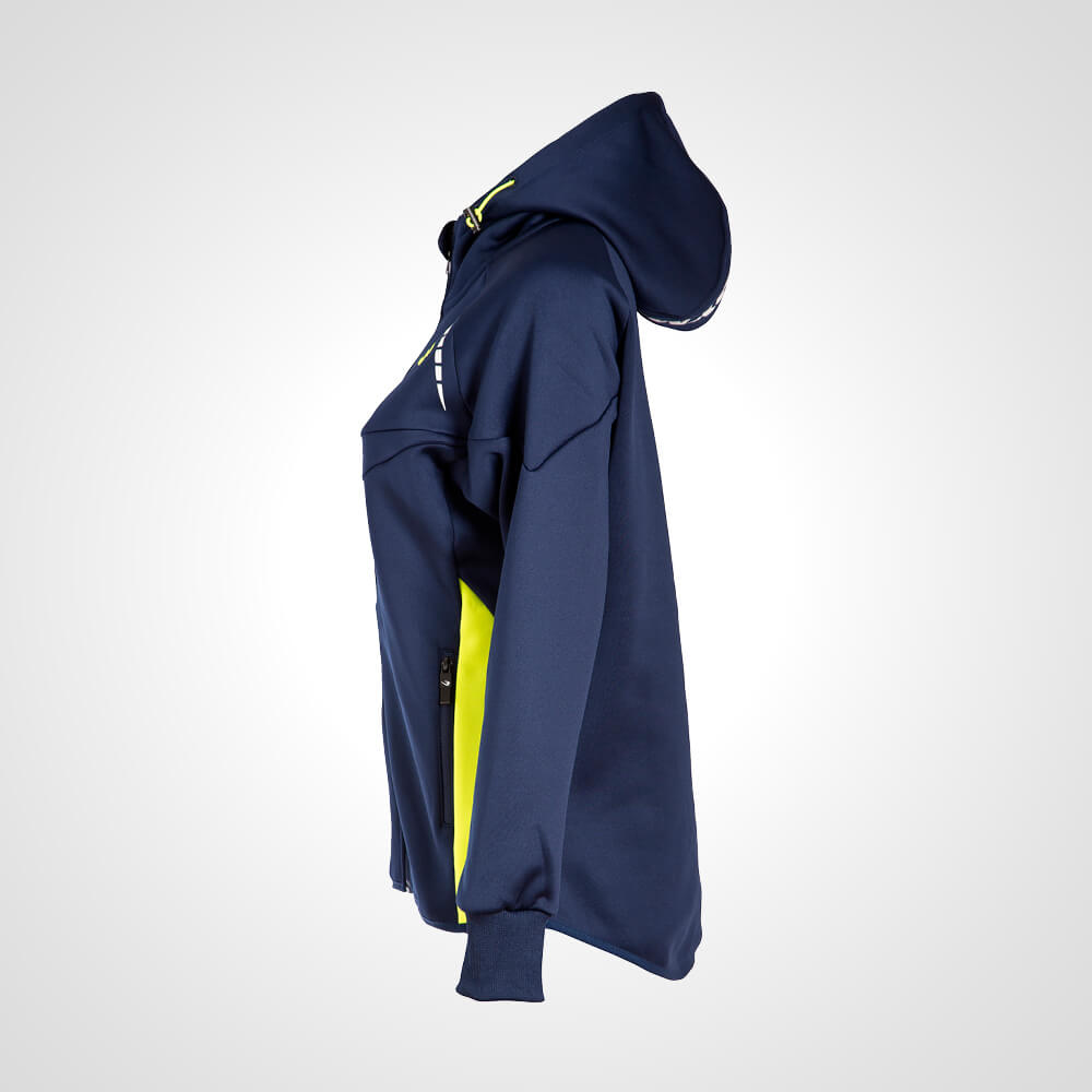 軽量でストレッチ性のある生地を使用したジップアップジャケット。衿、袖口、裾にリブ生地を使用したスポーティで機能的なデザイン。ジムの行き帰りやジョギング、ウォーキングなどのスポーツシーンはもちろん、カジュアルなアウターとして秋や春先にも活躍。手持ちのアイテムに合わせやすいシンプルなデザインです。背中のタックと比較的広めの腕周りでふんわりと着こなせます。ロゴ刺繍、ファスナートップ、スピンドル先のパーツをシルバーで統一させ女性らしいアクセントとしています。裏地無し、左右ポケット付き。