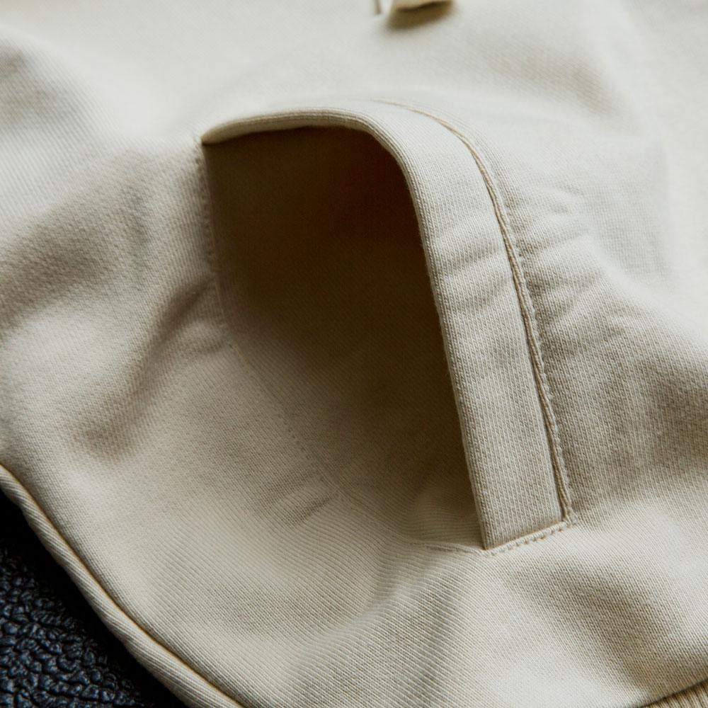 ボディー生地は17オンスの裏毛パイルスウェットを使用しています。動きやすいゆったりとしたデザインで、秋から春まで大活躍なスウェットです。着心地と耐久性に優れ、バッグデザインのロゴは大き過ぎずカジュアルな印象に◎