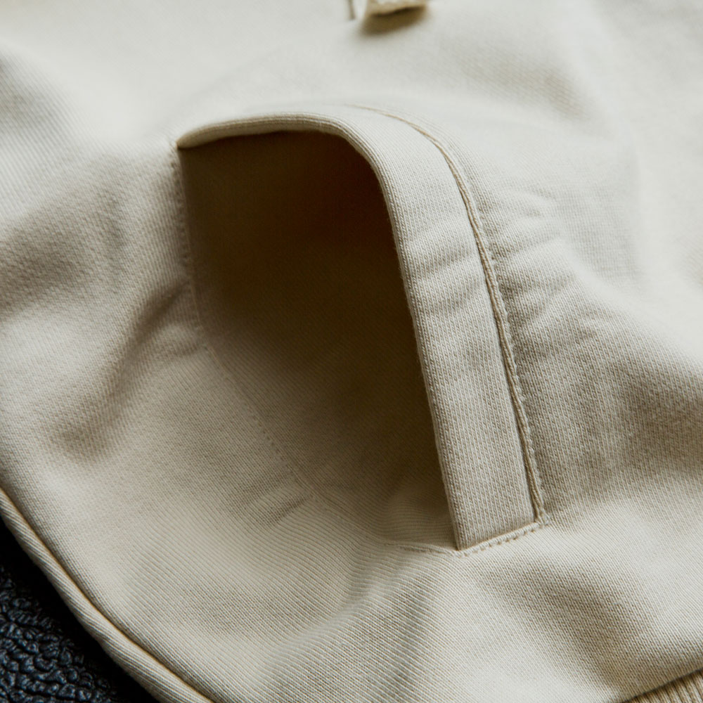ボディー生地は17オンスの裏毛パイルスウェットを使用しています。動きやすいゆったりとしたデザインで、秋から春まで大活躍なスウェットです。着心地と耐久性に優れ、バッグデザインのロゴは大き過ぎずカジュアルな印象に◎