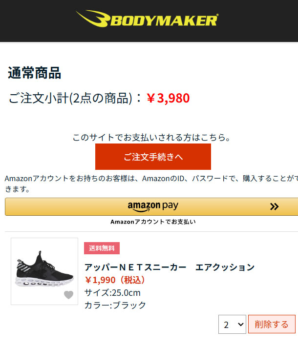 購入したい商品を買い物かごに入れて、ご注文手続きへ進みます。