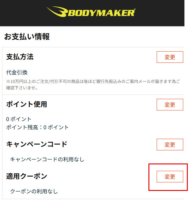 適用クーポンの変更を押してください。