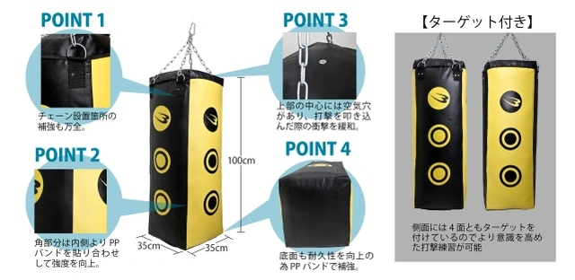 ターゲット付き 4面に3か所のターゲットがあり、より意識を高めた打撃トレーニングが可能