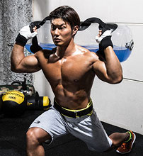 身体はウエイトの動きに合わせて重心を整えようとします。その反射運動により、体幹にも負荷がかかります。