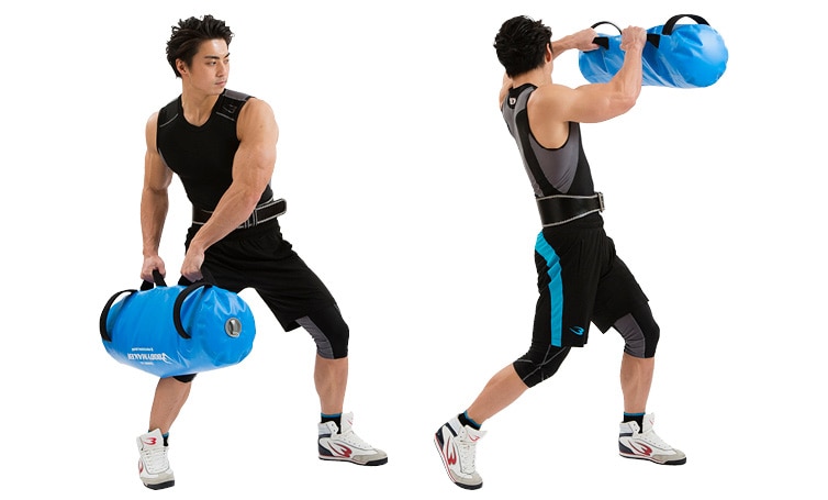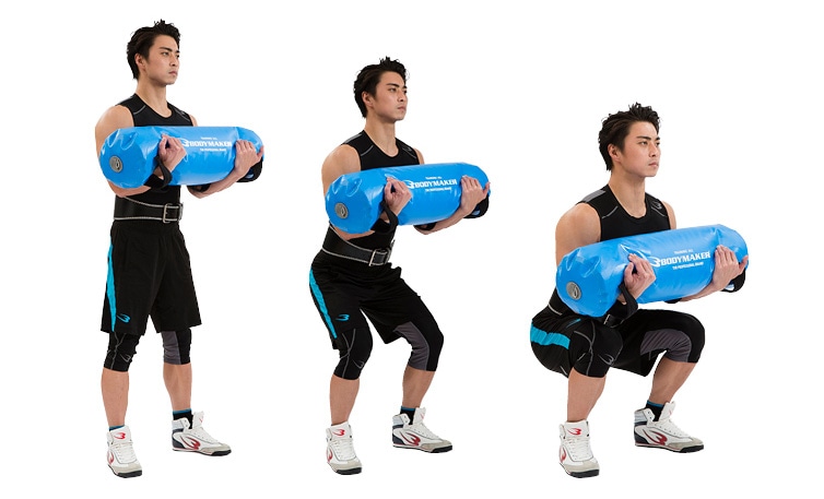 ・筋力強化はもちろんダイエットや身体の引き締めなど、幅広い目的で行われるトレーニングです。筋トレの基本となるトレーニングのスクワットをウォーターバッグで負荷をかけることで、身体の内側にある体幹も効果的にトレーングすることができます。