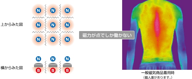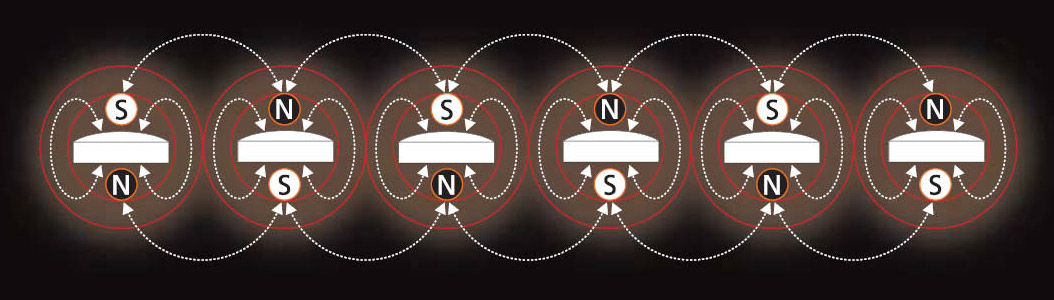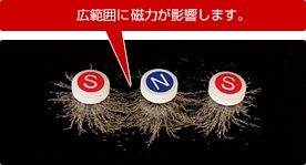コラントッテは、独自のN極S極交互配列により 磁力が広範囲に影響します。