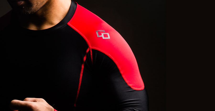 B・C・Gは、スポーツウエアとしてさまざまな競技にマッチするよう、サポート機能を維持しながら、同時に高い可動性も実現したデザインで設計されいます。 ショルダー部分には生地を切り替えで配置し、セットインのウエアよりはるかに高い、腕周りの可動性を実現しています。 それにより、腕の上げ下げや円運動などでウエアが引っ張られることがなく、快適な運動を可能にしています。