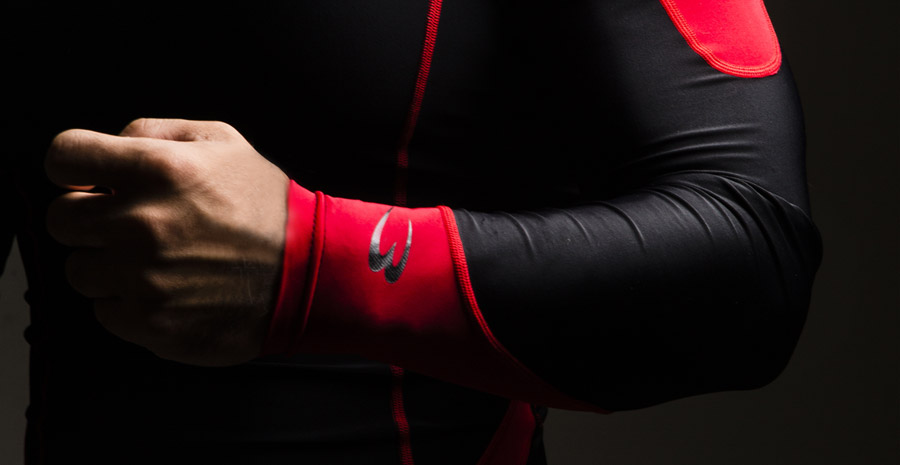 ロングスリーブのみ、リスト部分にも切り替えで生地を配置。筋力を鍛えにくい手首のブレを最小限に抑えます。